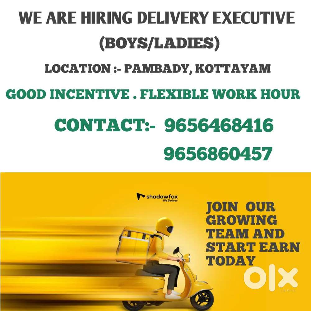 - ₹ 5000 - 10000 | Weeklyഡെലിവറി എക്സിക്യൂട്ടീവിനെ ആവിശ്യമുണ്ട്..Manarcadu, KottayamToday