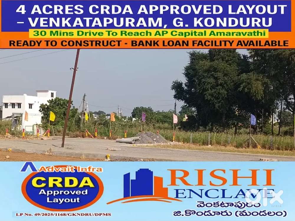 - ₹ 10,000RISHI ENCLAVE # G KONDURU # CRDA Plots # Ready to ConstructVijayawada - Guntur National Highway, Vijayawada18 Dec