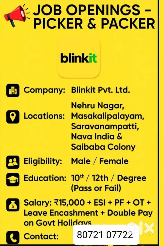 - ₹ 16000 - 18000 | MonthlyPicking and packing job saibaba colonySaibaba Colony, CoimbatoreToday
