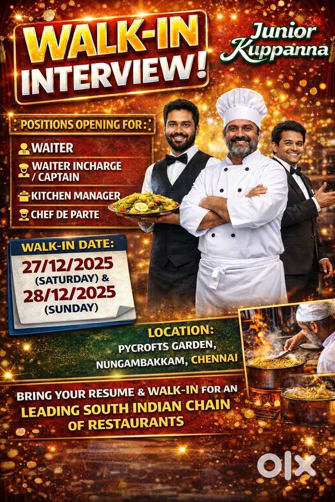 - Today₹ 12000 - 35000 | MonthlyWalk-In Interview for Restaurant PositionsSinganallur, Coimbatore