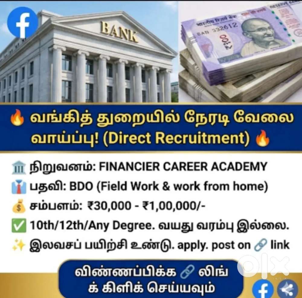 - ₹ 30000 - 100000 | MonthlyBank Field Officer Wanted - Earn ₹30,000 to ₹1 Lakh/MonthAdambakkam, ChennaiToday