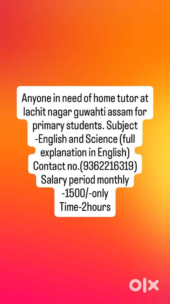 - Home tutor for primary students on the subjects of Eng and scienceLachat Nagar, Guwahati23 Dec