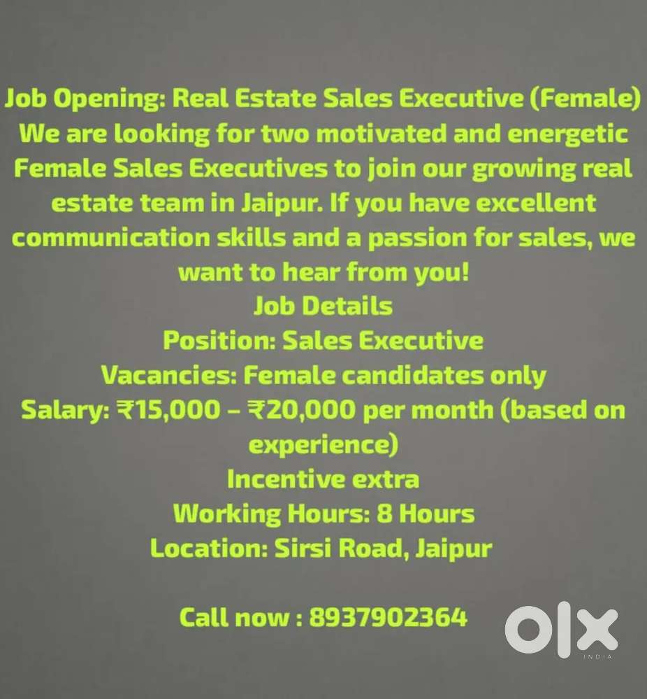 - ₹ 15000 - 20000 | MonthlyReal estates sales executiveVaishali Nagar, JaipurToday