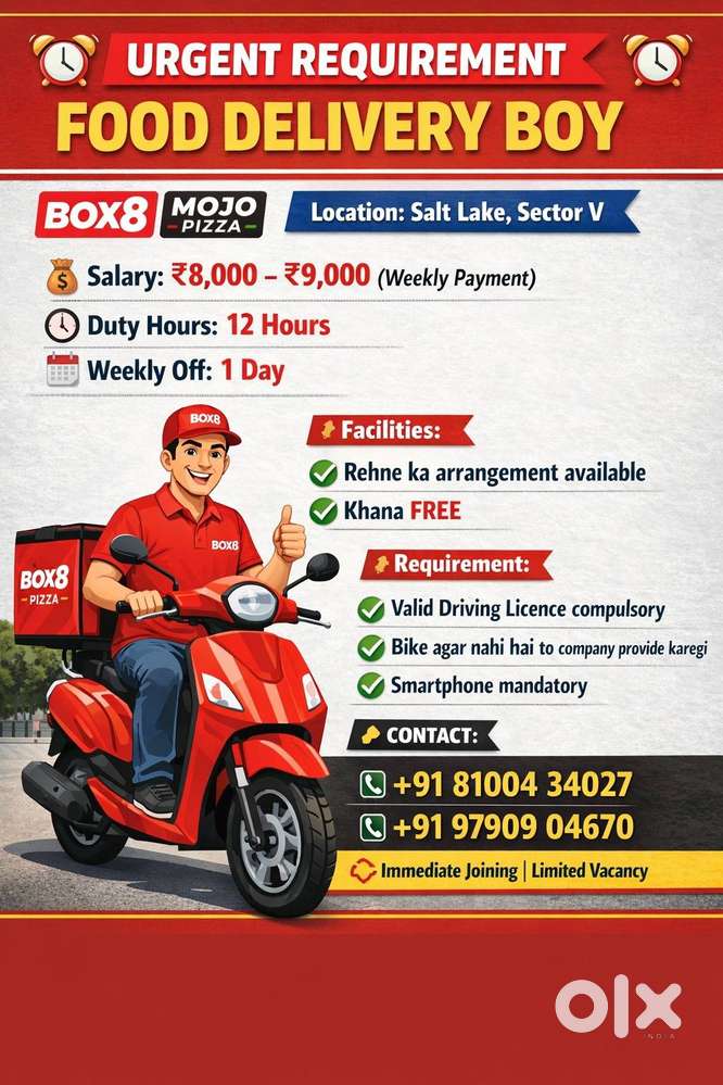 - ₹ 8000 - 30000 | WeeklyNeed delivery boy rahna khana freeKeshtopur, Kolkata15 Dec