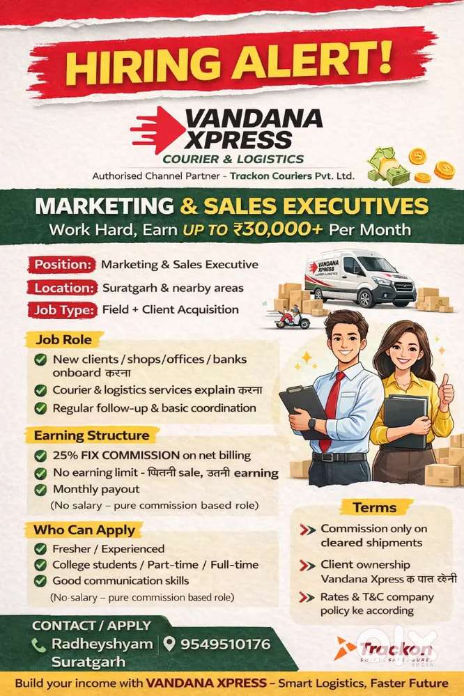 - ₹ 15000 - 25000 | Monthlyvandanaxpress courier servicesGyanendra Colony, SuratgarhYesterday
