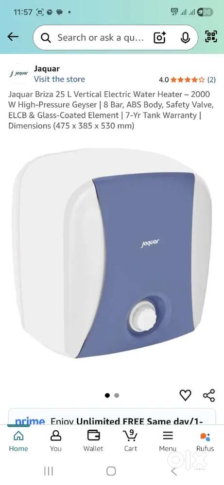 - ₹ 3,000Jaquar water heater 3 ltr insta and 25 ltr for sell new brand warrantySulabh Awas Yojna, LucknowToday