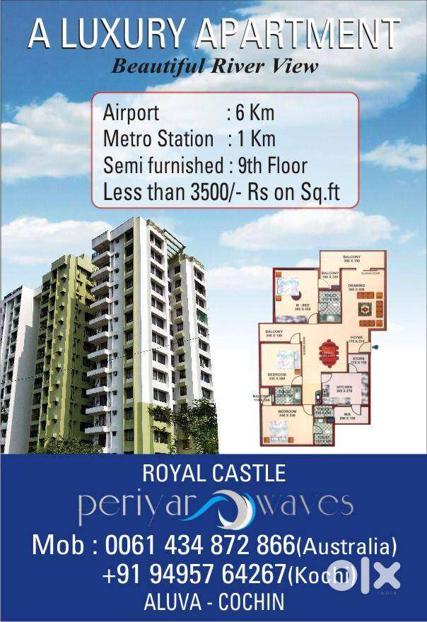 - ₹ 90,00,0003 BHK - 3 Bathroom - 2043 sqftTrinity 3BHK Water Facing Flat For Sale Aluva, Kochi.Paravur Junction, AluvaToday