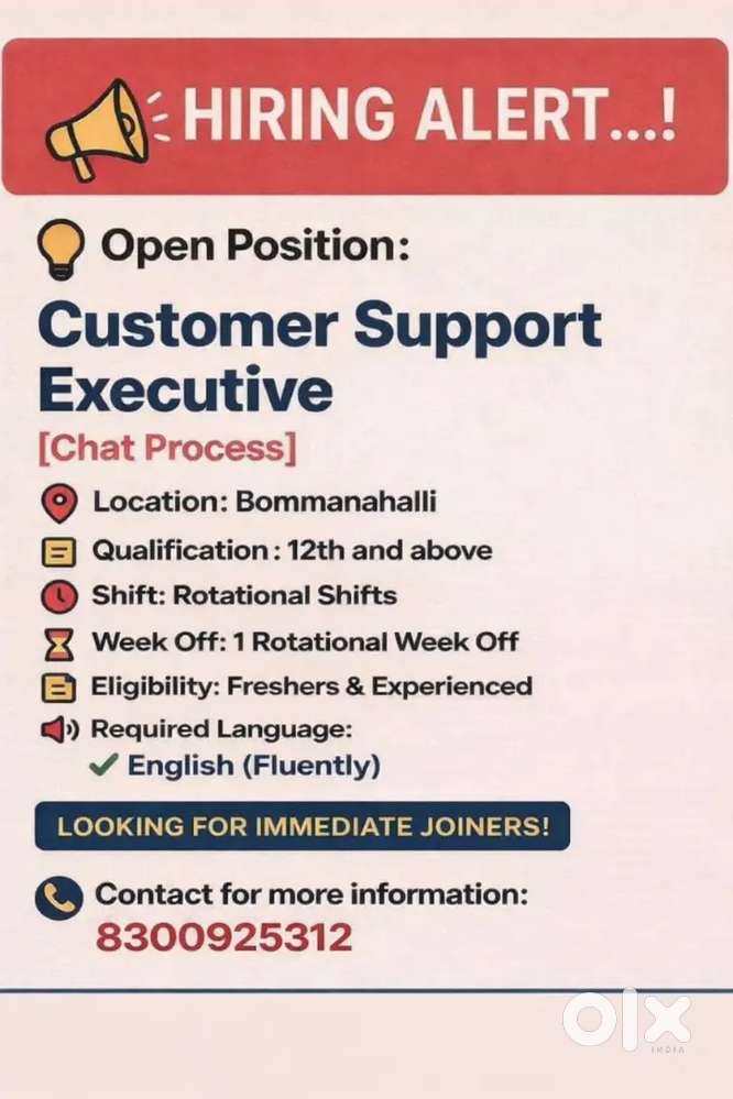 - ₹ 12000 - 16000 | MonthlyWe’re Hiring! Customer Care / Support ExecutiveHsr Layout Sector 5, Bengaluru16 Dec