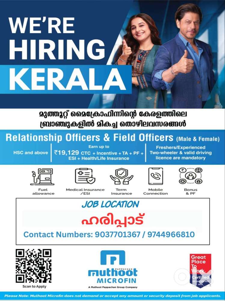 - ₹ 12000 - 20000 | MonthlyLeading Nbfc in kerala looking for staff in pala branchMeenachil, PalaiToday