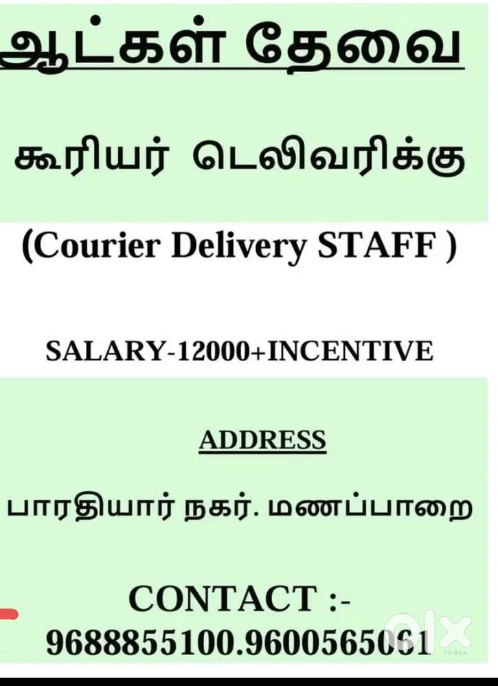 - ₹ 30000 - 40000 | MonthlyKaruril delivery velaiku Aatkal ThewaiGandhigramam, Karur19 Dec