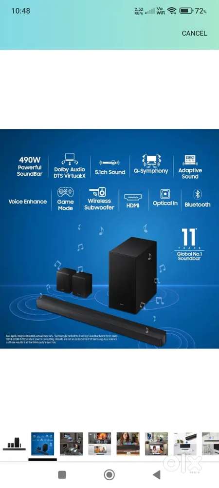 - ₹ 16,000Samsung soundbar HW-B67EF/XL 5.1dolby audio DTS Virtual:X Q SymphonyRahimpura, HyderabadToday