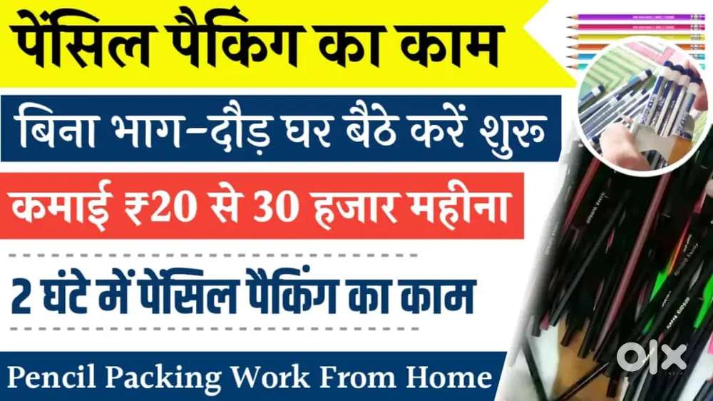 - ₹ 30000 - 30000 | MonthlyWork from home pencil packingRohini Sector 20, DelhiToday
