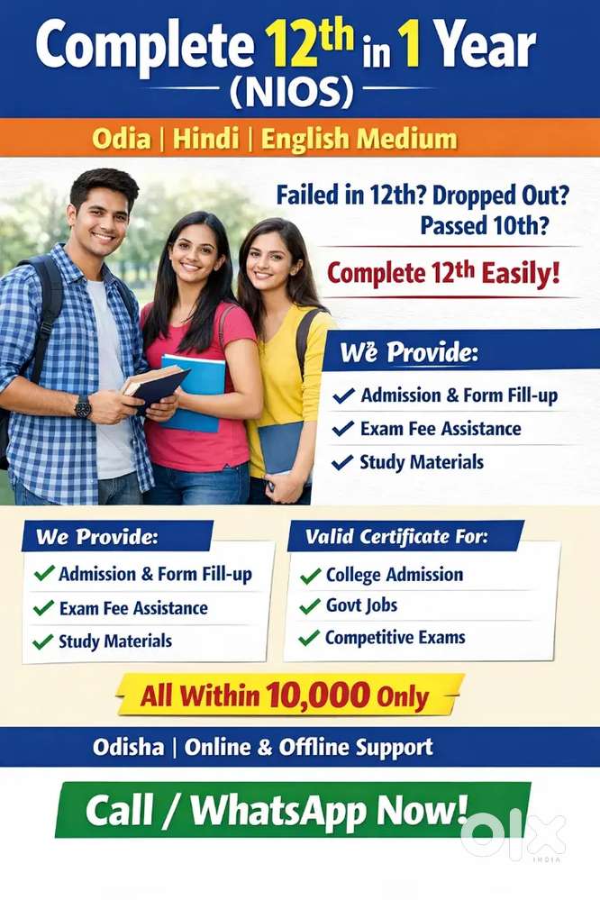- ₹ 10000 - 10000 | YearlyComplete 12th in 1 year through NIOS Central Government Board.Gs Nagar, CuttackToday