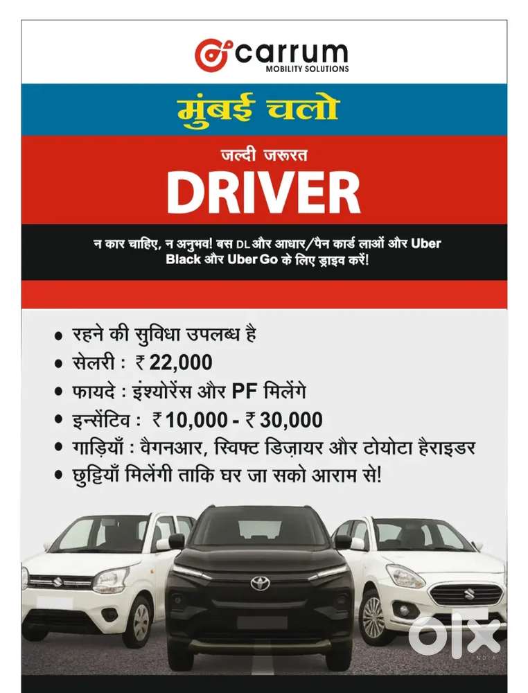 - ₹ 30000 - 60000 | MonthlyHiring Daily-Basis Drivers – Immediate StartBaba Saheb Ambedkar Chowk, Mumbai8 Dec