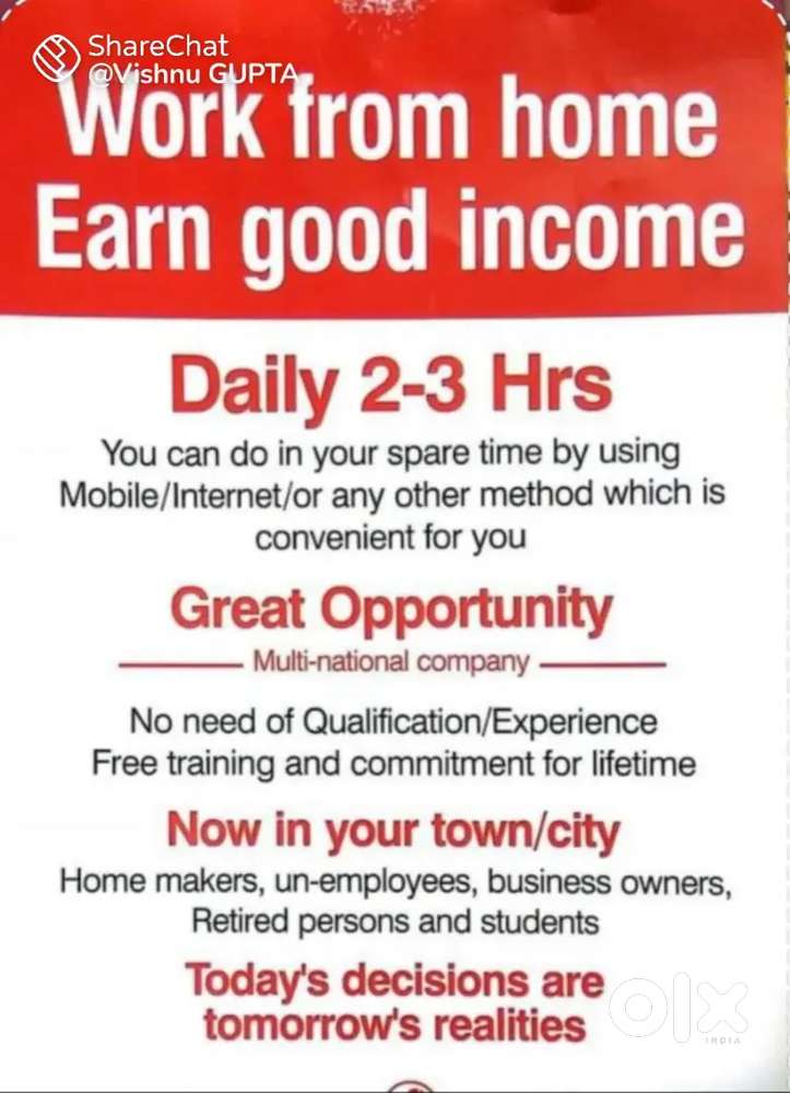 - ₹ 15000 - 20000 | MonthlyWORK FROM HOME OPPORTUNITY WITH SMART PHONE AND LAPTOPChak Ahah Husain, GorakhpurToday