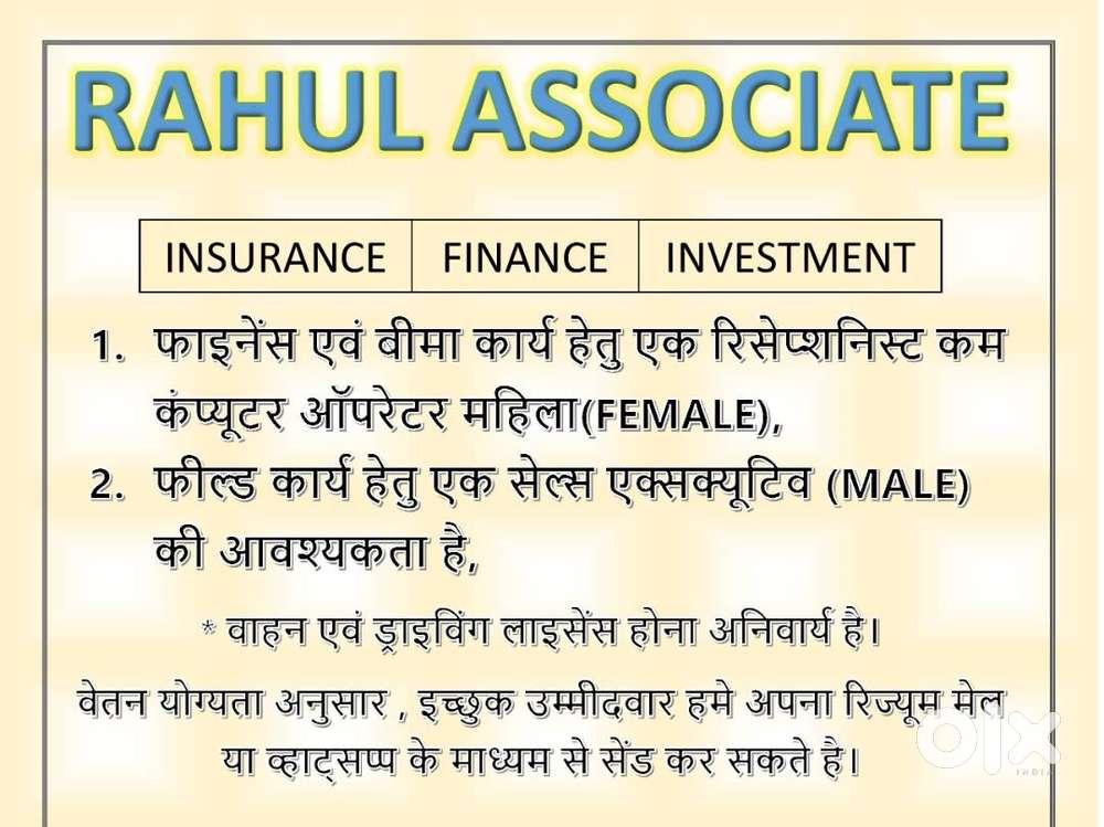- ₹ 6500 - 12000 | MonthlyRAHUL ASSOSIATEAmkhoh, Gwalior30 Nov