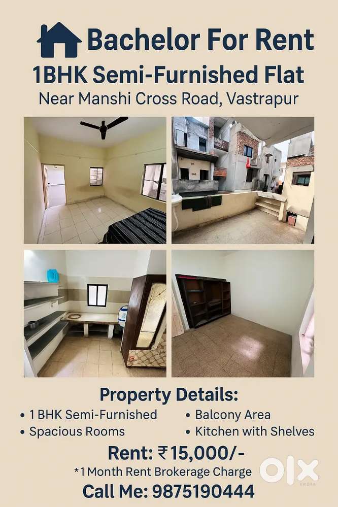 - ₹ 13,5001 BHK - 1 Bathroom - 769 sqftBachelor for 1bhk Semi-FurnishedVastrapur, Ahmedabad3 days ago