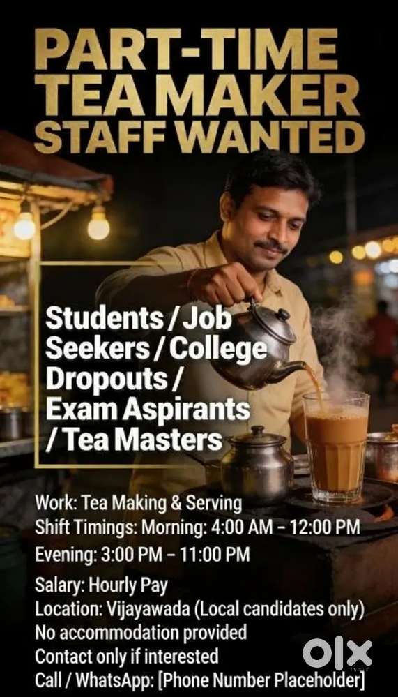 - ₹ 10000 - 18000 | HourlyTea MasterAuto Nagar, VijayawadaYesterday