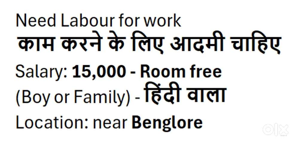 - ₹ 14000 - 15000 | MonthlyNeed labour for work -Devanahalli, YelahankaToday