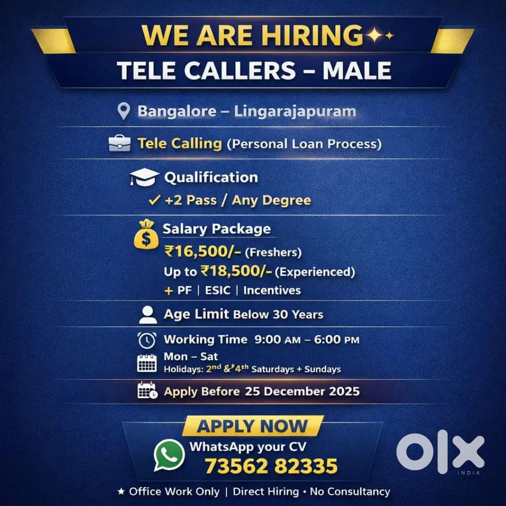 - ₹ 16500 - 18500 | MonthlyTele calling Job For Male Candidates In LingarajapuramLingarajapuram, BengaluruToday
