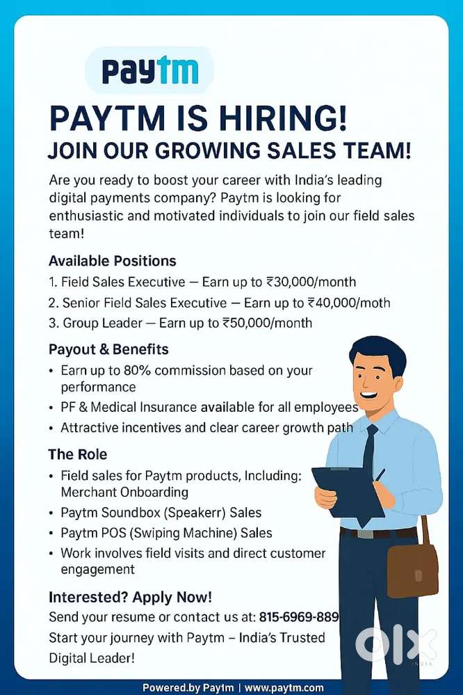 - ₹ 20000 - 50000 | MonthlyPaytm Sales ExecutiveUnity Nagar, ThrissurYesterday
