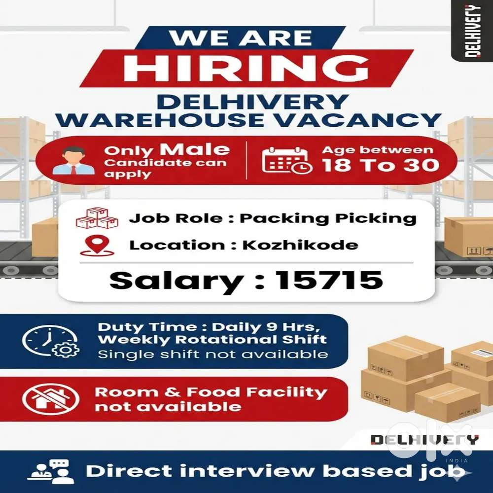 - ₹ 14000 - 15000 | MonthlyKozhikode Delhivery Warehouse vacancyFeroke, KozhikodeToday