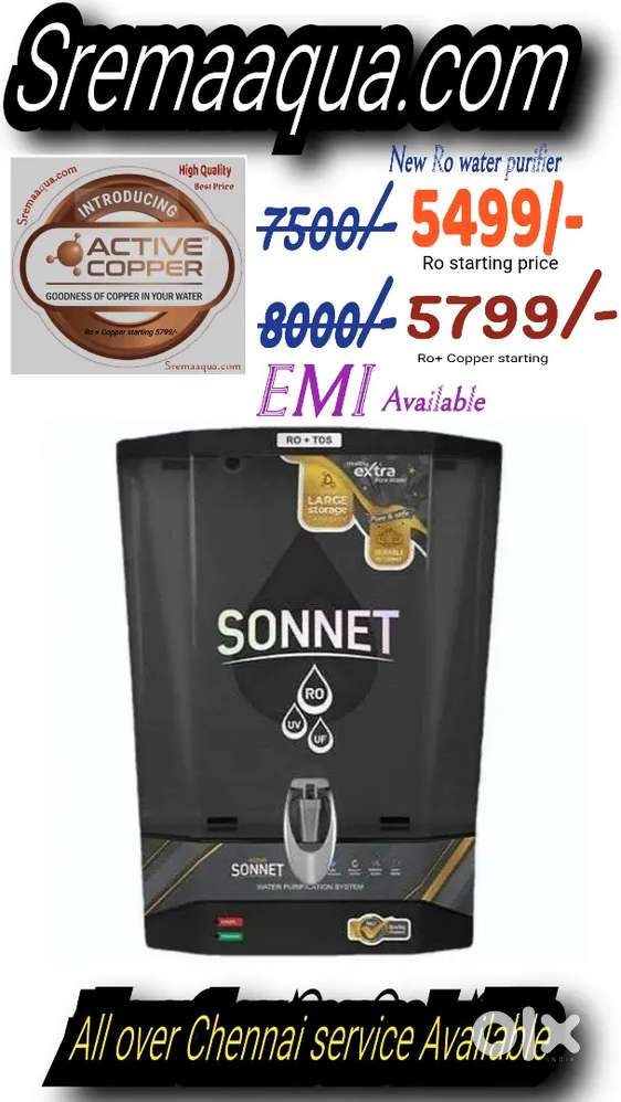 - ₹ 6,999New Aqua water High QualityVellavedu, Chennai5 days ago