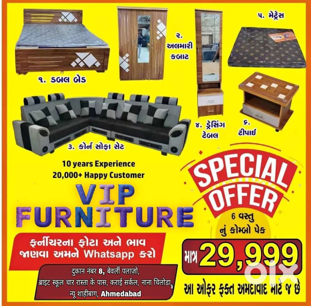 - ₹ 29,999COMBO OFFER WOODEN BED ALMIRAH WARDROBE SOFA MATTRESSE DRESSING TABLEAmdupura, AhmedabadToday