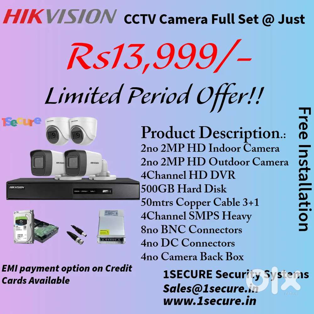- ₹ 13,999TodayHikvision Brand New 4 CCTV Camera Full Set. Call Now!Kamakshipalya, Bengaluru