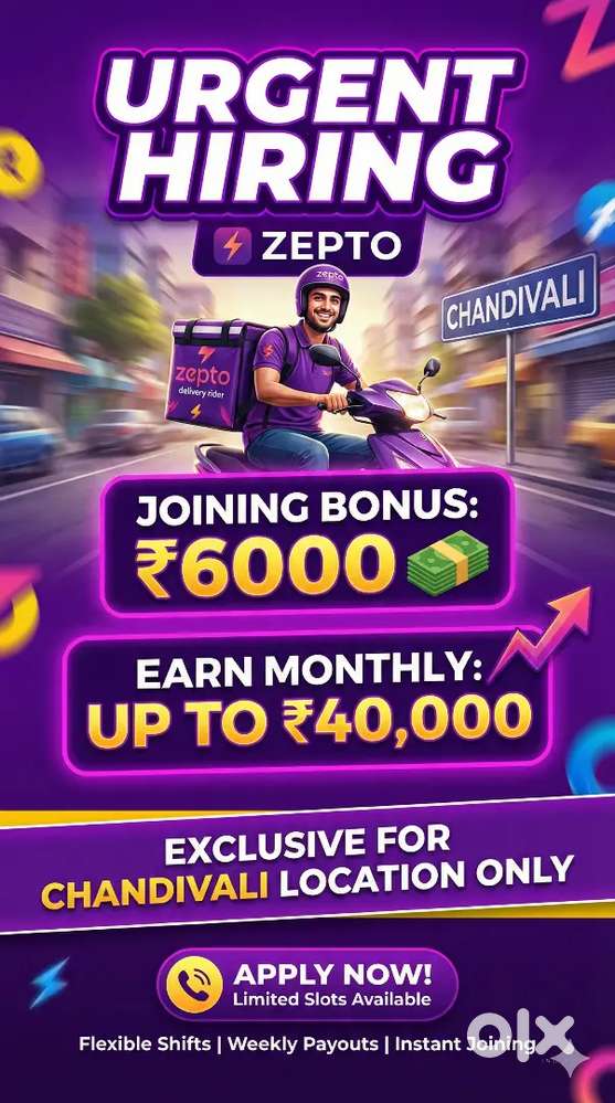- ₹ 20000 - 40000 | WeeklyZepto delivery partner processTetavli, Thane4 days ago