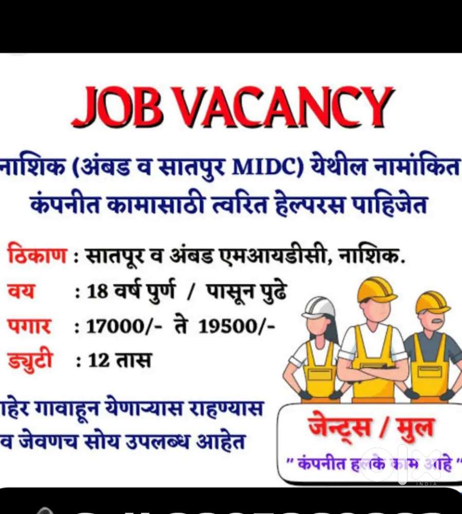 - ₹ 17000 - 18000 | MonthlyHELPER MIDC JOBPathardi Phata, NashikYesterday