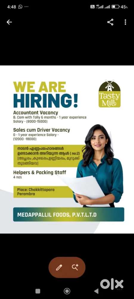 - ₹ 12000 - 16000 | Monthlyജോലി ഒഴിവുകൾ:Accountant NeededChevayur, Kozhikode23 Dec