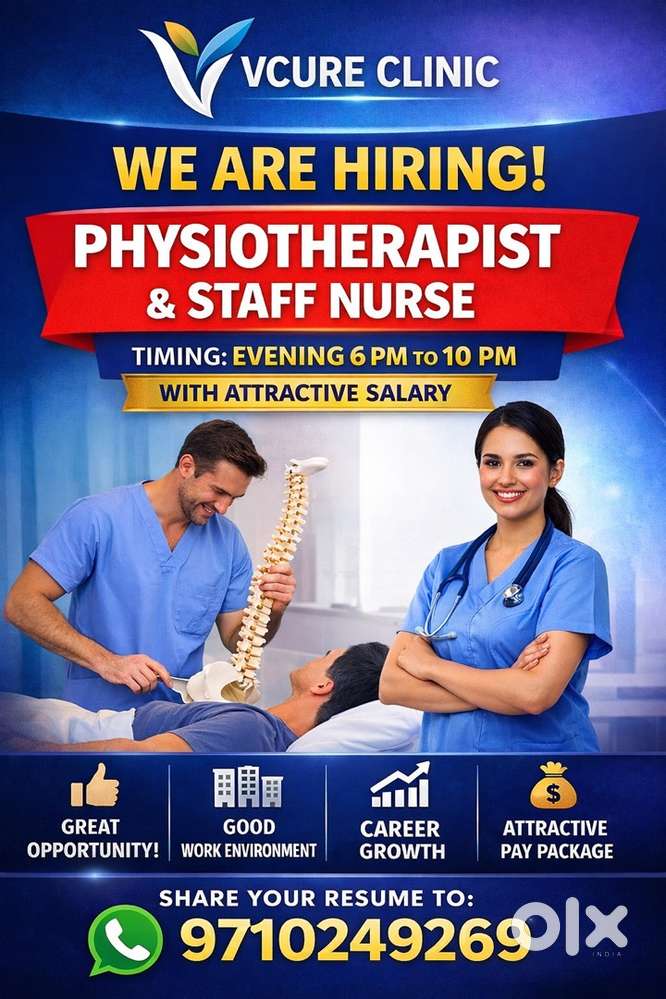 - ₹ 5000 - 7000 | MonthlyJob vacancy for physiotherapist and staff nurse chennaiNesapakkam Vivekanand Nagar, ChennaiToday