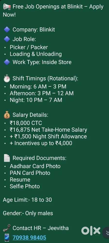 - ₹ 14000 - 18000 | MonthlyBlinkit Pickers and PackersChhota Anjaiah Nagar, Hyderabad6 Dec