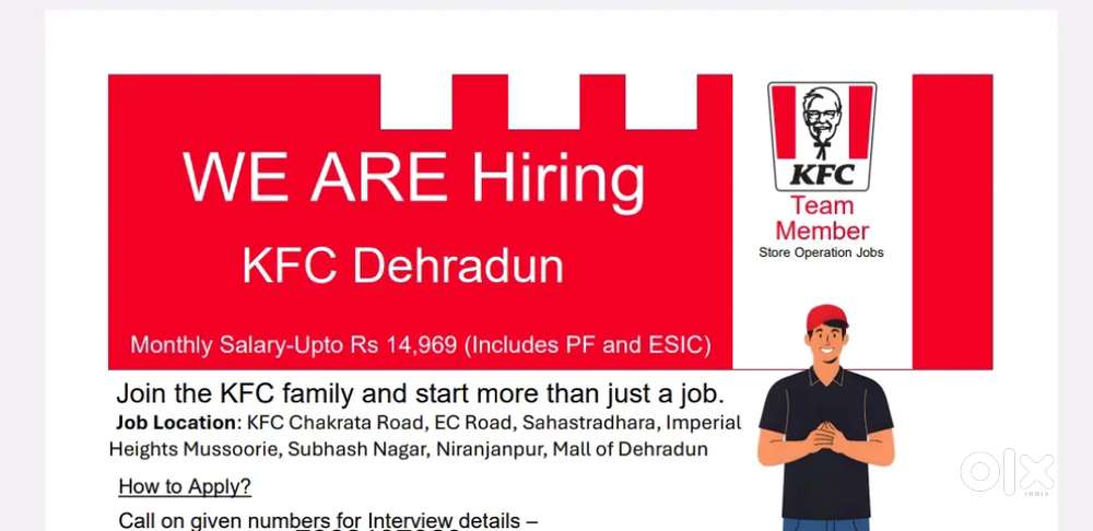 - ₹ 11000 - 13000 | MonthlyRequired freshers for KFC brandChaktonwala Grant, DehradunToday