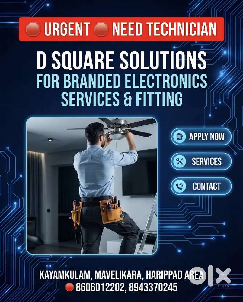 - Recruiting electricians for fan repair in ottapalamOttappalam, KeralaToday