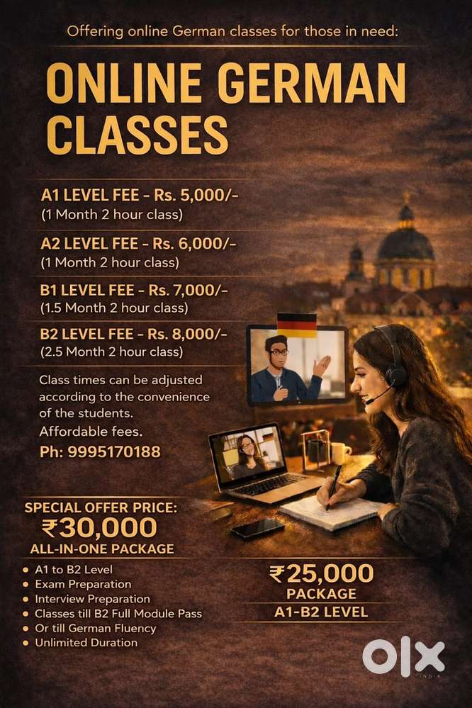 - German Online ClassesThampanoor, ThiruvananthapuramToday
