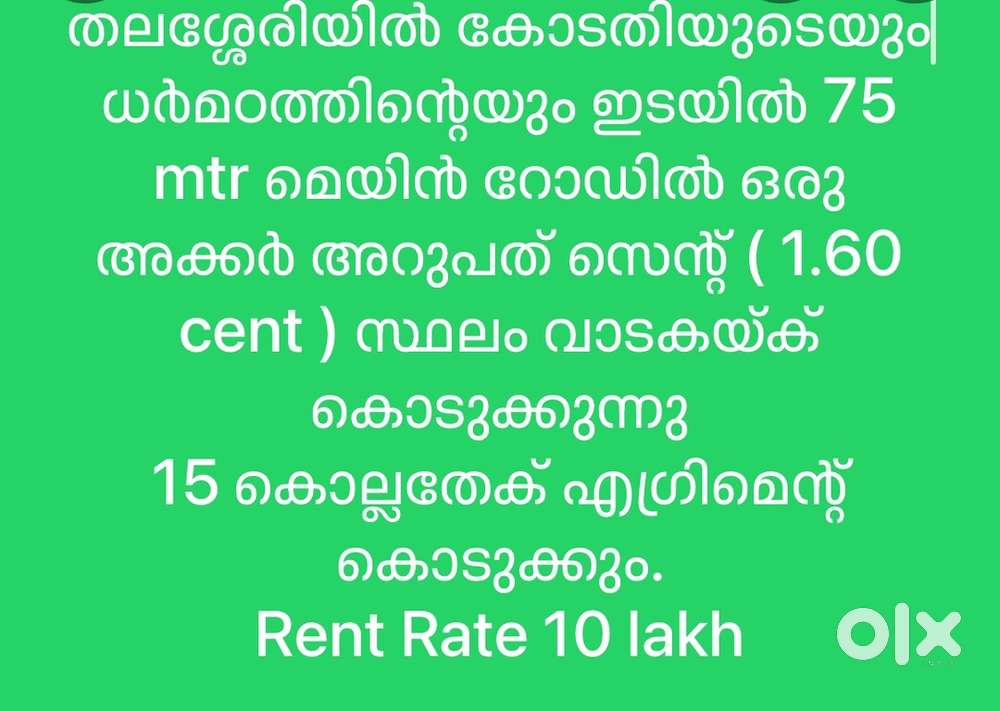 - ₹ 1,70,00020 NovDharmasala - 75 Cents for rentCaltex , Kannur