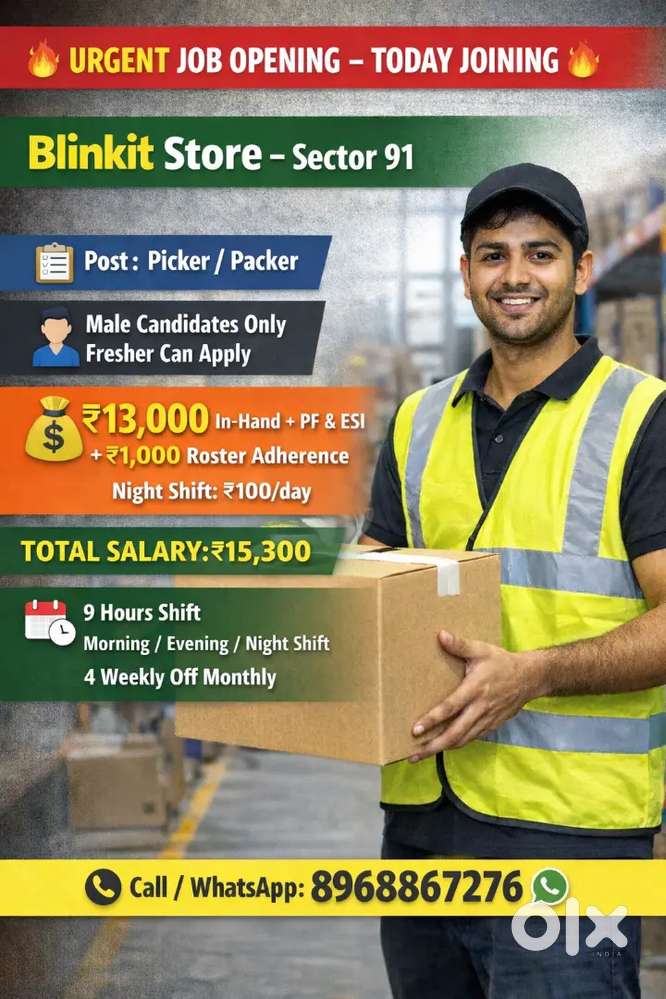 - ₹ 12800 - 15700 | MonthlyUrgent hiring for male picker packer direct hiringsSector 125, MohaliToday