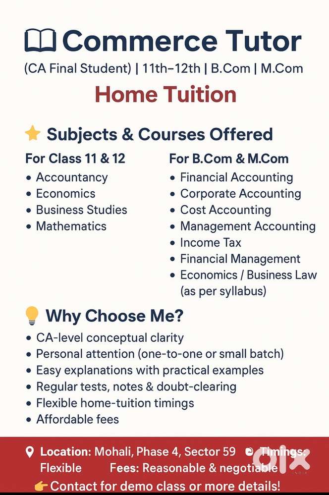 - Home Tuition Available in Chandigarh Mohali PanchkulaSector 20D, Chandigarh4 days ago