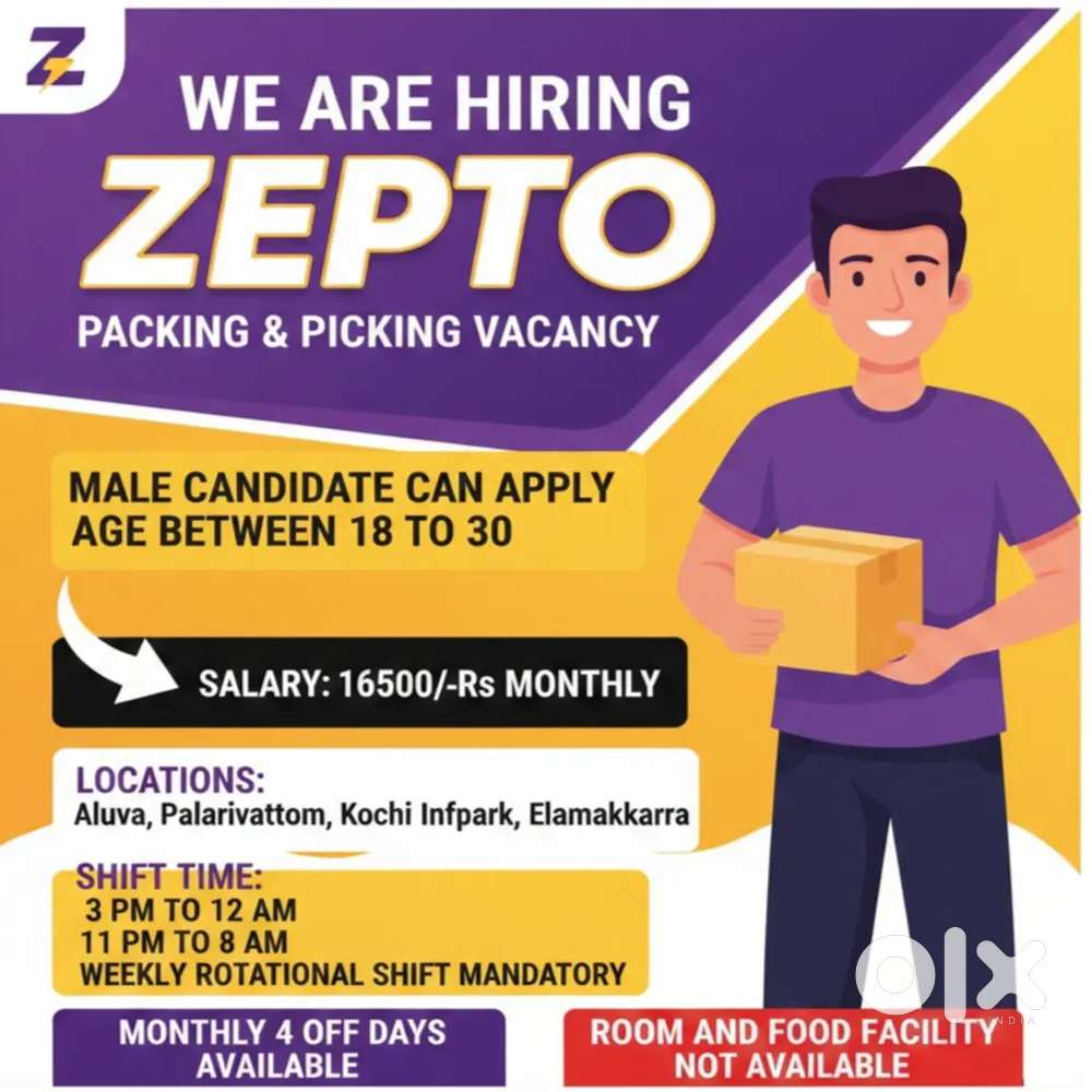 - ₹ 16000 - 16500 | Monthlykakkanad Zepto Packing Picking vacancyKakkanad, KochiToday