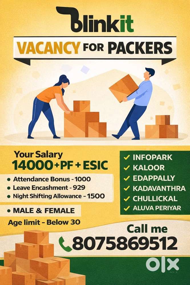 - ₹ 25000 - 27000 | MonthlyWanted m/ f packing helpers [ partime/ fulltime]Edappally, KochiYesterday