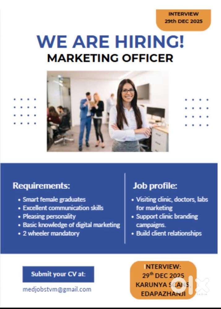 - ₹ 10000 - 12000 | MonthlyHiring female marketing executiveEdapazhanji, ThiruvananthapuramToday