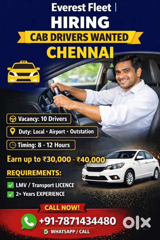 - ₹ 30000 - 40000 | Monthlyஓட்டுநர்கள் தேவை: Everest FAleet-ல் சேர்ந்து, Uber மூலம் சம்பாதிக்குங்Camp Road, ChennaiToday