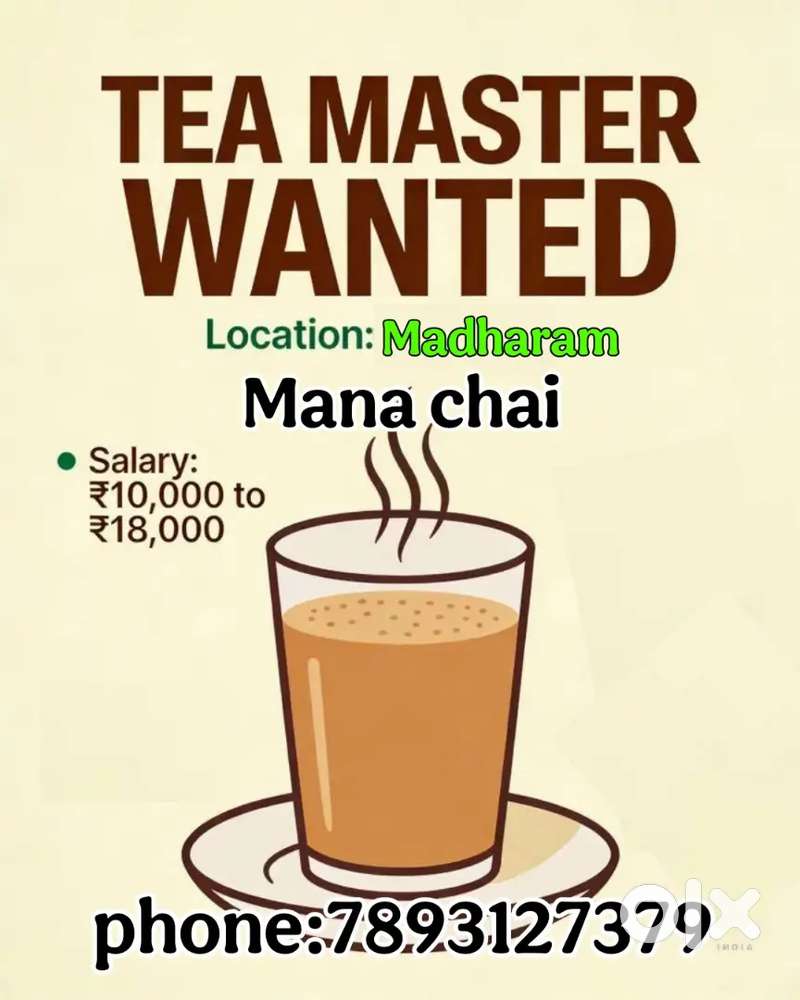 - ₹ 15000 - 18000 | WeeklyTea MasterVikarabad, Telangana14 Dec