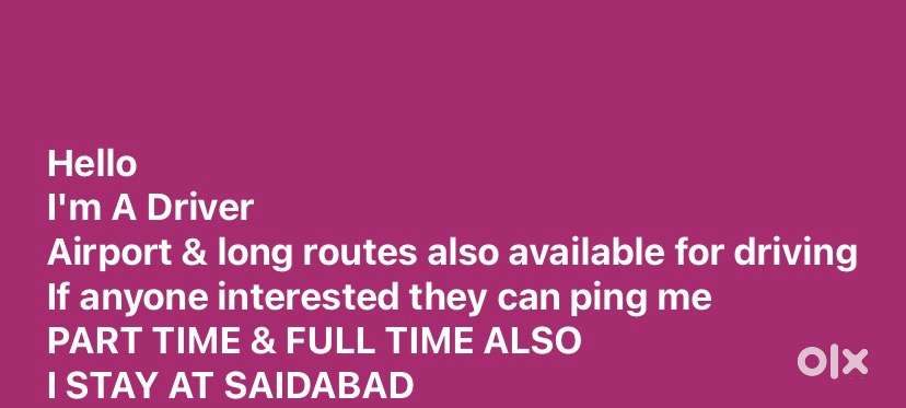 You can explore a variety of driver job opportunities in Whitefields on OLX by browsing local listings. Roles such as cab driver, bus driver, truck driver, OLA/Uber/Rapido driver, taxi driver, and delivery boy are widely available. Use filters like job type, schedule, and industry to quickly find the best match for your skills and preferences.