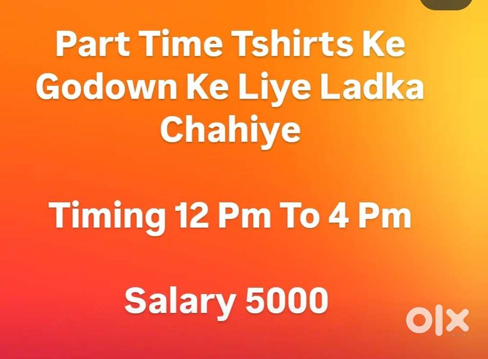 - Part TimeTshirts Ke Godown Ke Liye Ladka ChahiyeHarcharan Nagar, LudhianaToday