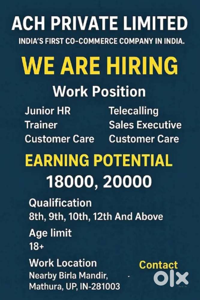 - ₹ 15000 - 24500 | MonthlyACH officeVrindavan, MathuraToday