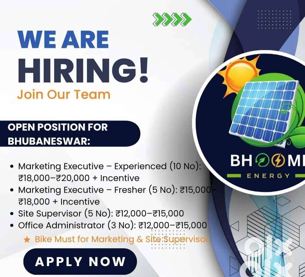 - ₹ 15000 - 25000 | MonthlyMarketing executive , SupervisorPaika Nagar, BhubaneshwarToday