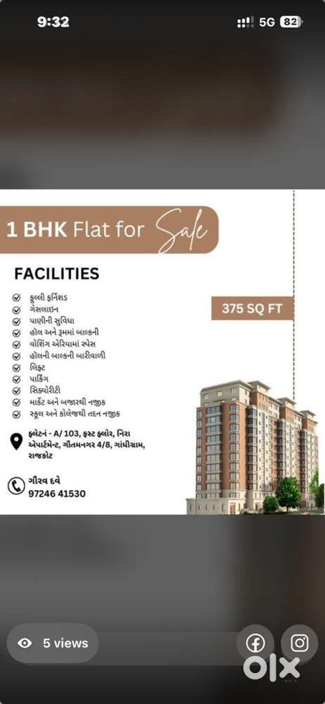 - ₹ 20,50,0001 BHK - 1 Bathroom - 400 sqft1BHK Flat, Mavadi ChowkdiMavadi Area, Rajkot20 Nov